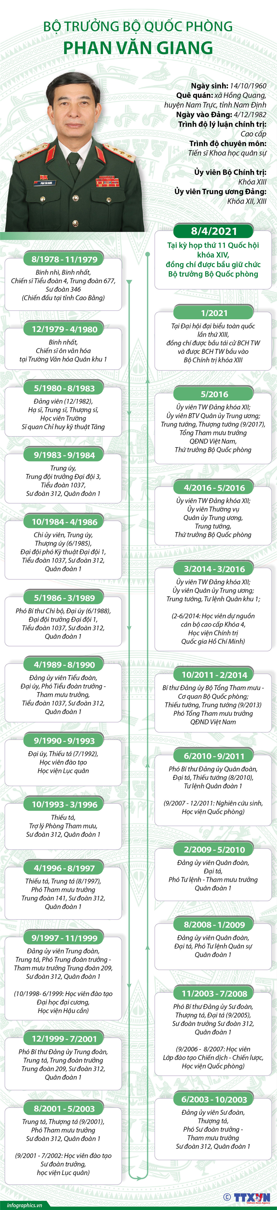 [Infographics] Tiểu sử Bộ trưởng Bộ Quốc phòng Phan Văn Giang