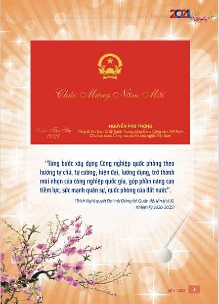 Chuyên mục Đưa nghị quyết của Đảng vào cuộc sống mở đầu bằng bài viết “Xây dựng các khu kinh tế - quốc phòng trong thế trận toàn dân bảo vệ Tổ quốc” của Thượng tướng, TS. LÊ HUY VỊNH, Ủy viên Trung ương Đảng, Ủy viên Quân ủy Trung ương, Thứ trưởng Bộ Quốc phòng, làm rõ quan điểm đúng đắn của Đảng về tiếp tục xây dựng, phát triển các khu kinh tế - quốc phòng, với mục tiêu tăng cường quốc phòng - an ninh ở các địa bàn chiến lược của Tổ quốc. Cùng chuyên mục còn có bài viết “Đoàn kết, tự lực, chủ động, sáng tạo trong thực hiện nhiệm vụ năm 2021” của Trung tướng NGUYỄN MẠNH HÙNG, Bí thư Đảng ủy, Chính ủy Tổng cục CNQP, đề cập phương hướng, giải pháp lãnh đạo thực hiện nhiệm vụ trọng tâm của Đảng ủy Tổng cục CNQP trong năm 2021.