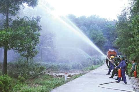 Huấn luyện phòng cháy, chữa cháy bảo vệ kho tàng.        Ảnh: ĐỨC CHÍNH