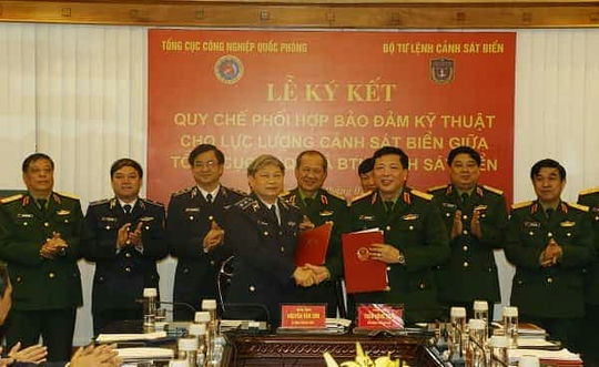 Trung tướng Trần Hồng Minh, Chủ nhiệm Tổng cục CNQP và Trung tướng Nguyễn Văn Sơn - Tư lệnh Cảnh sát biển Việt Nam, đồng chủ trì lễ ký kết. Cùng dự còn có các đồng chí lãnh đạo, chỉ huy và đại diện một số cơ quan chức năng của hai đơn vị.