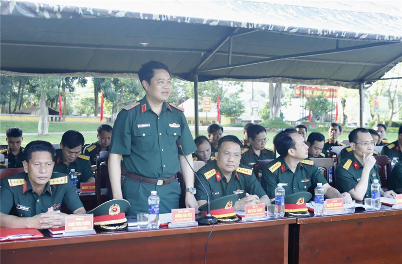 Thiếu tướng Dương Văn Yên phát biểu tại buổi kiểm tra trên thao trường.