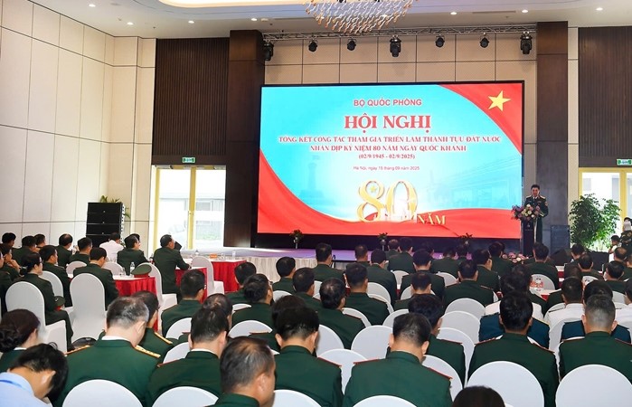 Tại hội nghị, Thiếu tướng Lê Quang Tuyến, Phó Chủ nhiệm Tổng cục Công nghiệp quốc phòng (CNQP), Phó trưởng ban tổ chức triển lãm của Bộ Quốc phòng, đã báo cáo nêu rõ: Tổng cục CNQP được Bộ Quốc phòng giao nhiệm vụ chủ trì phối hợp cùng các cơ quan, đơn vị tổ chức tham gia triển lãm và đạt nhiều kết quả nổi bật. Theo đánh giá, các không gian trưng bày của Bộ Quốc phòng (cả trong nhà và ngoài trời) có nội dung đặc sắc, phong phú, hình thức thể hiện sáng tạo, hiện đại, mang tính giáo dục và truyền cảm hứng sâu sắc. Trong 20 ngày diễn ra Triển lãm, không gian trưng bày của Bộ Quốc phòng đã thu hút nhiều triệu lượt khách tham quan; các lực lượng đã tổ chức cấp phát trên 170.000 chai nước, 200.000 phong lương khô, 23.000 hộp sữa cho các lực lượng phục vụ và nhân dân.