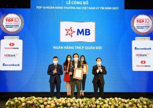 Bảng xếp hạng Top 10 Ngân hàng uy tín năm 2021 dựa trên nghiên cứu và đánh giá độc lập của Vietnam Report thông qua ba tiêu chí chính, gồm: Năng lực tài chính; ý kiến đánh giá từ doanh nghiệp, chuyên gia, người tiêu dùng; mô hình phân tích lượng hóa uy tín trên truyền thông của từng ngân hàng. Được vinh danh trong Top 10 là những đại diện có hoạt động hiệu quả và vị thế vững chắc trên thị trường ngân hàng. MB được đánh giá cao nhờ chủ động ứng biến trước những biến động của dịch Covid-19 và nhanh chóng thích ứng với xu thế chuyển đổi số của ngành ngân hàng.