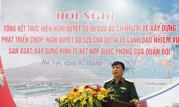 Thiếu tướng Nguyễn Việt Hùng, Phó Chính ủy Tổng cục CNQP, phát biểu chỉ đạo Hội nghị.