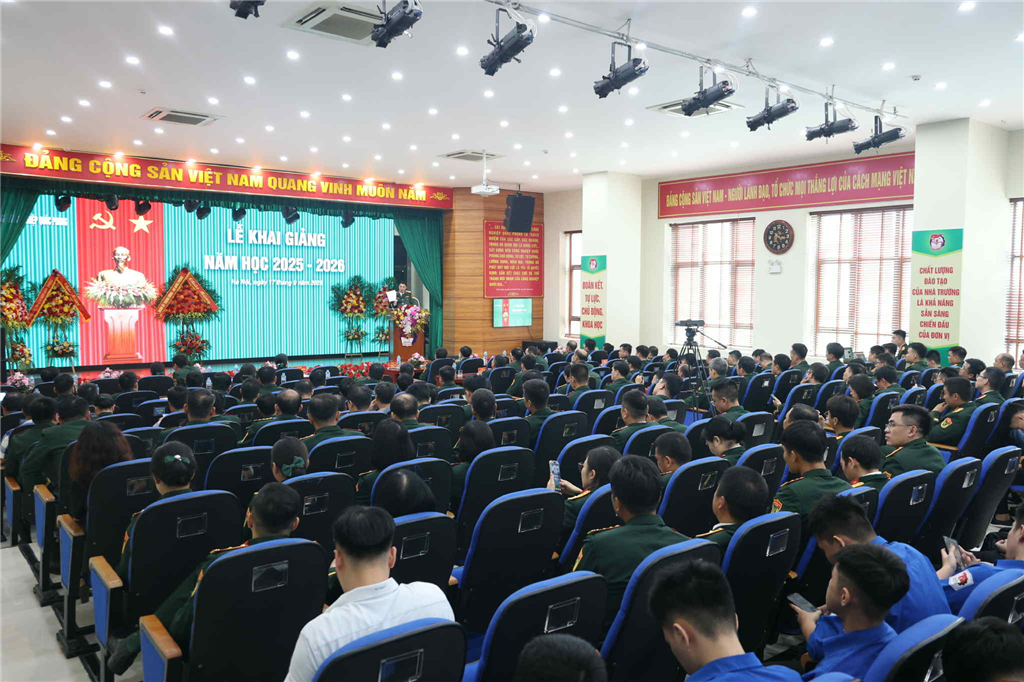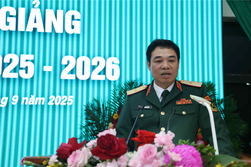 Trình bày diễn văn tại Lễ khai giảng, Thượng tá Vũ Quang Bách, Hiệu trưởng nhà trường nhấn mạnh: Năm học 2024-2025, nhà trường đã tập trung nâng cao chất lượng đào tạo theo phương châm “Chất lượng đào tạo của nhà trường là khả năng sẵn sàng chiến đấu của đơn vị”; tiếp tục hoàn thiện, cải tiến nội dung, chương trình, đổi mới phương pháp dạy và học theo hướng chuẩn hóa, hiện đại hóa, phát huy tính tích cực, chủ động, sáng tạo của người học. Tích cực tổ chức các hoạt động ngoại khóa, bồi dưỡng, rèn luyện nâng cao trình độ, kỹ năng nghề cho học viên; tăng cường đầu tư cơ sở vật chất, trang thiết bị kỹ thuật, nâng cấp giảng đường, thao trường, bãi tập bảo đảm đồng bộ, từng bước hiện đại, phục vụ cho đào tạo, huấn luyện và sản xuất kết hợp. Trong năm học vừa qua, nhà trường đã tổ chức đào tạo 47 lớp với 1.356 học viên. Chất lượng đào tạo đều đạt và vượt các chỉ tiêu đề ra. Nhà trường cũng triển khai nhiều đề tài, sáng kiến cấp cơ sở phục vụ quá trình đào tạo, huấn luyện; nghiệm thu nhiều đầu giáo trình đưa vào đào tạo. Nhà trường đã xây dựng 1 chương trình trung cấp, 7 chương trình cao đẳng; đề nghị mở 4 mã ngành mới (hàn, kỹ thuật ML&ĐHKK, quản lý kho hàng, an toàn lao động)... Tham gia đào tạo nâng cao trình độ kỹ năng nghề cho công nhân các nhà máy thuộc Tổng cục và các đơn vị, doanh nghiệp; tổ chức bồi dưỡng kiến thức quốc phòng, an ninh và đào tạo giáo dục quốc phòng, an ninh cho sinh viên các trường... Công tác tuyển sinh năm học 2025 - 2026 hệ quân sự, hệ chỉ tiêu CNQP và hệ dân sự, đảm bảo chặt chẽ đúng quy định.