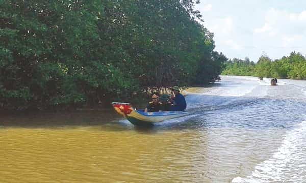 Cán bộ, công nhân Nông trường tuần tra bảo vệ rừng đước.