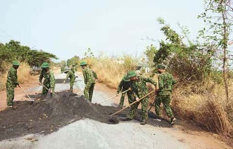 Cán bộ, chiến sĩ Đoàn KT-QP 737 sửa chữa đường giao thông trên địa bàn đóng quân. Ảnh: CTV
