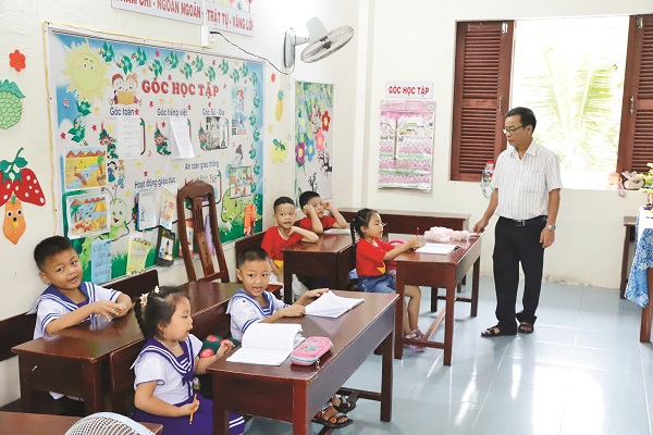 n ở thị trấn Trường Sa, sau hàng phong ba xanh mướt là lớp học nhỏ của thầy Lê Xuân Hạnh. Trò chuyện với thầy Hạnh tôi được biết, quê thầy ở Khánh Hòa, suốt hơn 35 năm công tác, thầy dành 15 năm dạy học cho con em đồng bào dân tộc thiểu số ở Cam Lâm. Sau đó, thầy viết đơn tình nguyện ra huyện đảo Trường Sa, đến nay cũng gần 5 năm. Ở tuổi 53, thầy Hạnh vẫn miệt mài trên hành trình gieo mầm con chữ. "Trường Sa là một phần của Khánh Hòa quê hương tôi, vậy nên tôi luôn mong muốn có dịp được đặt chân đến đây để dạy chữ cho con em nhân dân trên đảo. Dẫu biết điều kiện sinh hoạt, giảng dạy không như trong đất liền, nhưng tôi nguyện cố gắng hết sức mình" - thầy Hạnh chia sẻ.
