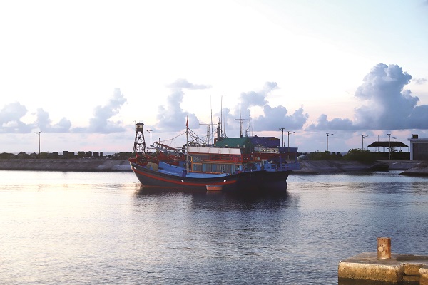 Tàu cá ngư dân neo đậu tại đảo Trường Sa lớn.