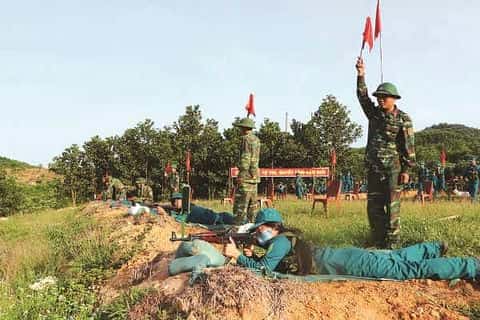 Huấn luyện cho lực lượng tự vệ huyện Vũ Quang.    Ảnh: CTV