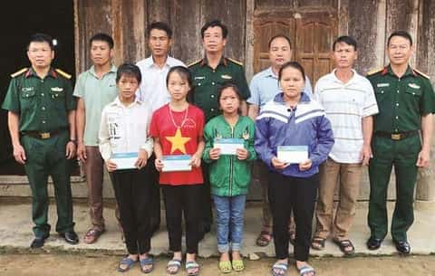 Đoàn KT - QP 4 trao học bổng cho các em học sinh nghèo vượt khó. Ảnh: CTV