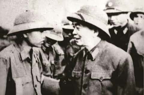 Đại tướng Võ Nguyên Giáp thăm bộ đội tham gia xây dựng đường sắt thống nhất năm 1976.  Ảnh: TL