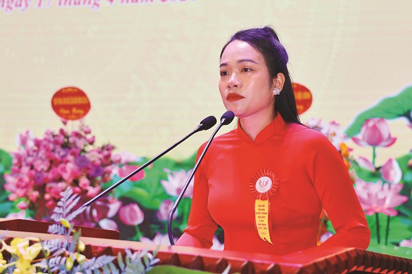 Trương Thanh Lệ Ngọc phát biểu tại Đại hội thi đua Quyết thắng Nhà máy Z129.