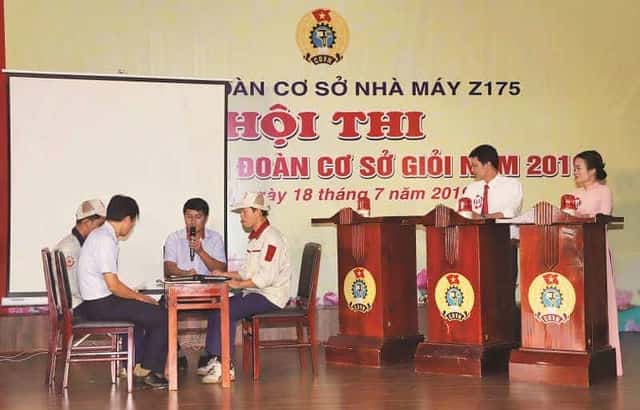 Thí sinh thi xử lý tình huống tại Hội thi cán bộ Công đoàn cơ sở giỏi năm 2019 của Nhà máy Z175.