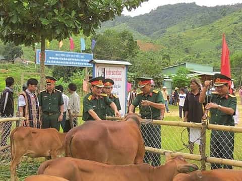 Với phương châm “Nói cho dân hiểu, làm cho dân tin, hướng dẫn để nhân dân làm theo”, những năm qua, Đảng ủy, chỉ huy Đoàn Kinh tế - Quốc phòng (KT-QP) 207 đã triển khai các tổ, đội sản xuất và phân công trí thức trẻ tình nguyện thực hiện “3 cùng” (cùng ăn, cùng ở, cùng làm) với dân; tích cực tuyên truyền vận động nhân dân sản xuất theo phương pháp mới; khơi dậy tiềm năng đất đai, chuyển đổi cơ cấu cây trồng, vật nuôi, ứng dụng tiến bộ khoa học kỹ thuật vào sản xuất, nhằm từng bước thoát nghèo. Theo Thượng tá Phạm Văn Thành, Bí thư Đảng ủy, Chính ủy Đoàn 207: Đến nay, đơn vị đã triển khai hàng chục mô hình khuyến nông, khuyến lâm hiệu quả; đưa giống mới năng suất cao vào trồng trọt, chăn nuôi; tạo thêm nhiều việc làm tại chỗ; từng bước hình thành, phát triển vùng nông sản mang tính hàng hóa. Tiêu biểu là mô hình chăn nuôi bò nhóm hộ, hỗ trợ hơn 200 con bò sinh sản cho 10 nhóm hộ với 100 hộ dân. Mỗi nhóm chọn một người có uy tín làm nhóm trưởng chịu trách nhiệm phân công chăm sóc, chấm công từng hộ tham gia lao động để phân chia lợi nhuận... Bà BhLing A Chắt, thôn A Grí, xã A Xan, huyện Tây Giang. phấn khởi cho biết: “Những hộ tham gia được cán bộ chỉ dẫn phương pháp chăm sóc bò, làm chuồng trại sạch sẽ, mát về mùa hè, ấm về mùa đông, phòng tránh tốt dịch bệnh và được sử dụng bò trong việc làm nương, rẫy. Đàn bò của nhóm hộ chúng tôi vừa đẻ thêm 3 con bê đấy. Chúng tôi biết ơn bộ đội Đoàn 207 nhiều lắm”.