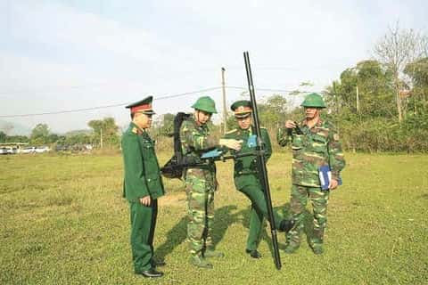 Kiểm tra thiết bị phục vụ rà phá bom mìn, vật nổ.