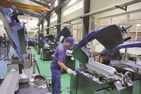 Sản xuất máy cưa xuất khẩu tại Nhà máy Z125. Ảnh: PHƯƠNG ANH