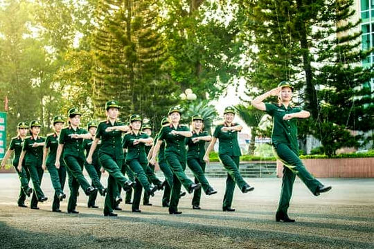 Nữ quân nhân Nhà máy Z131 luyện tập điều lệnh.