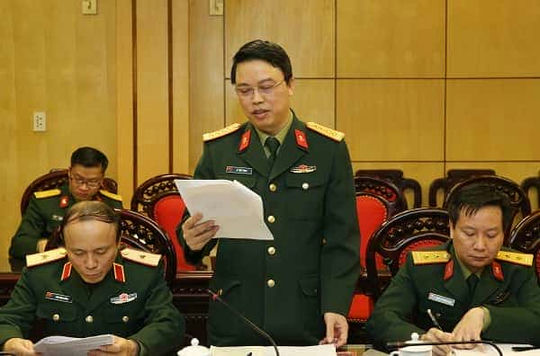 Đại tá Lê Thiết Hùng, Tổng biên tập Tạp chí CNQP& Kinh tế, Thư ký Hội đồng chỉ đạo, trình bày báo cáo