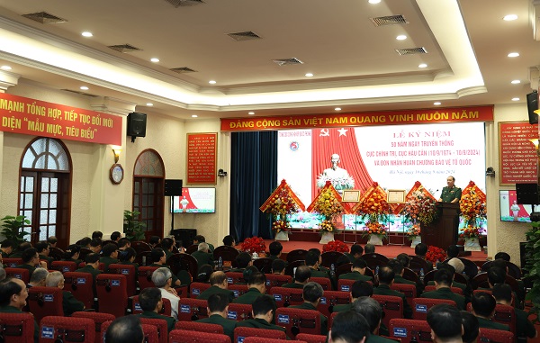 Diễn văn tại buổi lễ do Thiếu tướng Lê Ngọc Thân, Chủ nhiệm Chính trị Tổng cục CNQP trình bày, nêu rõ: Cách đây 50 năm, ngày 10/9/1974, theo yêu cầu nhiệm vụ, Thủ tướng Chính phủ đã ban hành Nghị định số 211/CP thành lập Tổng cục Kỹ thuật. Thực hiện Nghị định của Chính phủ, một bộ phận cán bộ cơ quan chức năng thuộc Tổng cục Hậu cần được điều động về thành lập khung cán bộ đầu tiên của các cơ quan Tổng cục Kỹ thuật, trong đó có Cục Chính trị, Cục Hậu cần. Từ đó, ngày 10/9/1974 là mốc lịch sử đánh dấu sự ra đời của Cục Chính trị, Cục Hậu cần thuộc Tổng cục Kỹ thuật (nay là Cục Chính trị, Cục Hậu cần thuộc Tổng cục CNQP).