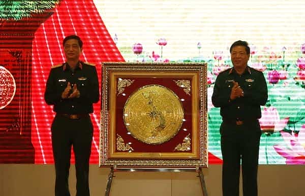 Trung tướng Trần Hồng Minh, Chủ nhiệm Tổng cục CNQP trao quà của Tổng cục CNQP tặng đại diện Bộ Tư lệnh Quân khu 2.