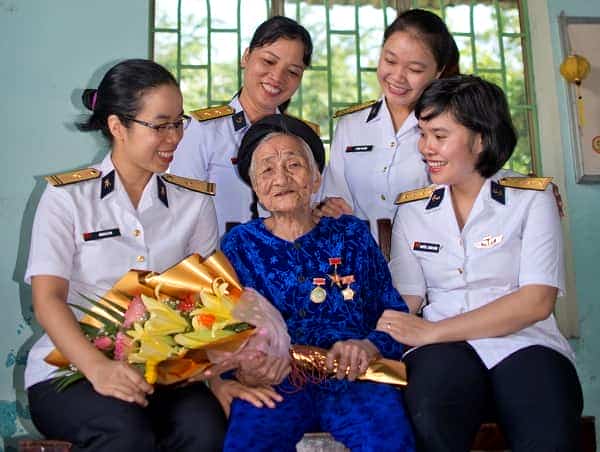 Đoàn cán bộ Tổng công ty Sông Thu thăm và tặng quà Mẹ Việt Nam anh hùng đơn vị nhận phụng dưỡng.