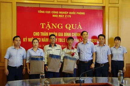 Đại diện lãnh đạo, chỉ huy Nhà máy Z175, trao quà tặng thân nhân gia đình chính sách tại Nhà máy.