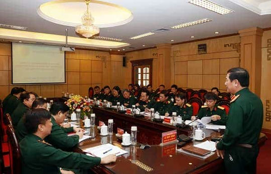 Thượng tướng Lê Huy Vịnh phát biểu tại buổi làm việc với Tổng cục Công nghiệp quốc phòng