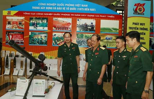 Thượng tướng Bế Xuân Trường, Ủy viên Trung ương Đảng, Ủy viên Quân ủy Trung ương, Thứ trưởng Bộ Quốc phòng, xem sản phẩm do Tổng cục CNQP sản xuất trưng bày tại buổi Lễ.