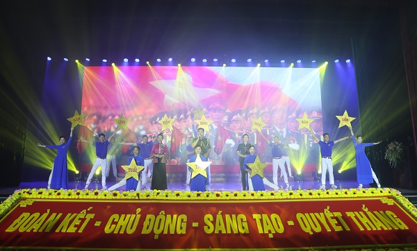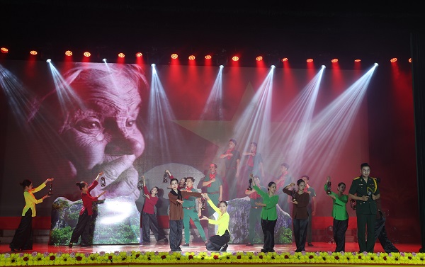 Tiết mục dự thi với chủ đề “Xứng danh Anh hùng - sáng bừng quốc sử” của Đội tuyên truyền viên trẻ Nhà máy Z111.