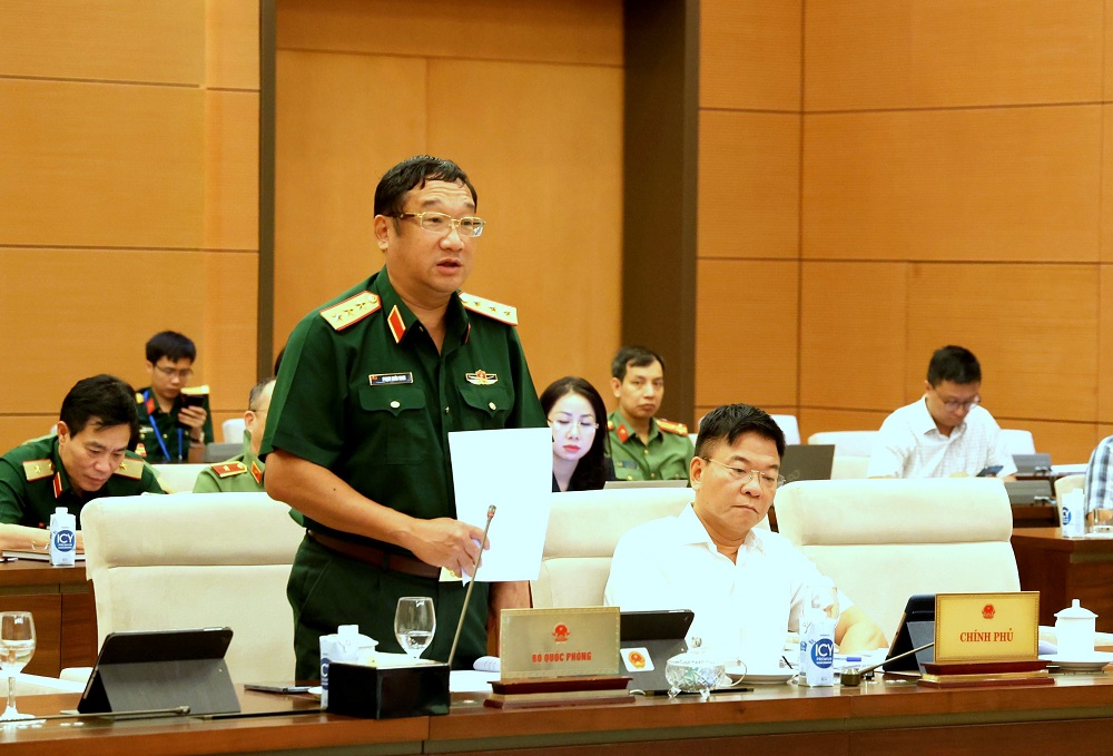 Thượng tướng Phạm Hoài Nam, Thứ trưởng Bộ Quốc phòng, báo cáo giải trình một số nội dung của dự thảo Luật CNQP, AN và ĐVCN.